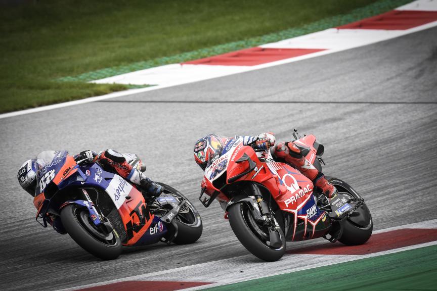 De cara a la última vuelta, todo se redujo a dos KTM vs una Ducati: Pol Espargaró vs Miller vs Oliveira. Dos corredores persiguiendo su primera victoria, uno persiguiendo su primera victoria en seco. Fue Pol Espargaró quien empezó la vuelta en cabeza y consiguió una buena carrera en la primera curva, pero al entrar en la zona de frenada, la KTM se puso muy defensiva, quizás demasiado defensiva. Eso comprometió su salida y Miller estaba sobre él antes de lograr ponerse junto al número 44 y hacer que el movimiento se atascara en el complicado giro a la derecha cuesta abajo.